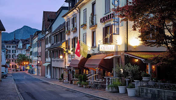 Das Esos Hotel Quelle liegt in einer ruhigen Gegend in Bad Ragaz, in der Nähe des Flusses Tamina. Die Tamina-Therme ist nur 5 Gehminuten entfernt und bietet eine Vielzahl von Wellnessmöglichkeiten. Im Zentrum der Stadt finden Sie eine Auswahl an Restaurants, Bars und Geschäften. Das Hotel befindet sich auch in der Ferienregion Heidiland, die bekannt ist für ihre malerischen Wander- und Radwege. Der städtische Bahnhof ist in 10 Gehminuten erreichbar und die Taminaschlucht in Bad Ragaz liegt nur 5 km entfernt.