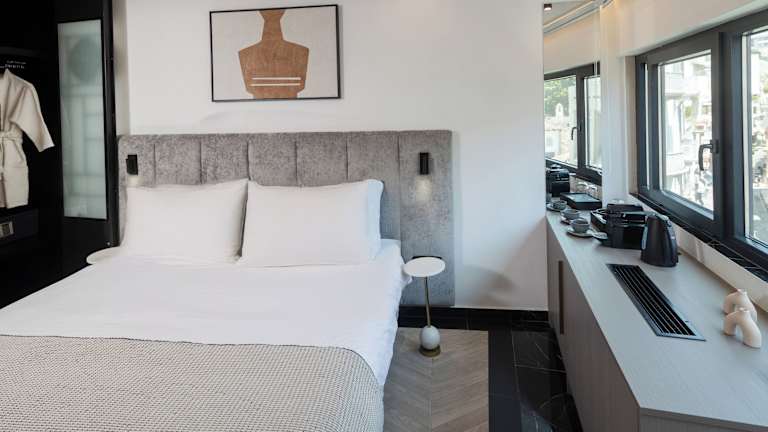 Die Zimmer in der Esse Athens sind mit einem Schreibtisch, einem Flachbild-TV und einem eigenen Badezimmer ausgestattet. Außerdem stehen Bettwäsche und Handtücher bereit. Jedes Zimmer verfügt über eine Kaffeemaschine, und einige bieten zusätzlich einen Balkon oder Stadtblick. Die Wohneinheiten sind ebenfalls mit einem Safe versehen.