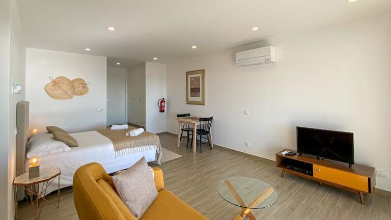 Das Estúdio com Fantástica Vista Mar - Praia da Luz bietet Übernachtungsmöglichkeiten mit kostenlosem WLAN und Klimaanlage. Es ist eine Ferienwohnung mit Zugang zu einem Tennisplatz und einer Sonnenterrasse.