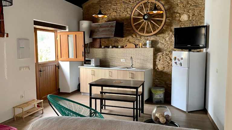 Das Estudio Pajar rural con bonito jardín - Los Gayoles Rural ist eine charmante Unterkunft in Castropol, die mit einem schönen Garten, kostenfreiem WLAN und einer malerischen Aussicht auf den Garten begeistert. Das Apartment verfügt über alle Annehmlichkeiten, die Sie für einen komfortablen Aufenthalt benötigen, darunter ein gemütliches Schlafzimmer, ein gut ausgestattetes Badezimmer und eine voll ausgestattete Küche. Genießen Sie die Sonne auf der Terrasse und erkunden Sie die Umgebung beim Angeln und Radfahren. Der Flughafen Asturien ist nur 92 km entfernt, und ein kostenpflichtiger Flughafentransfer wird angeboten.