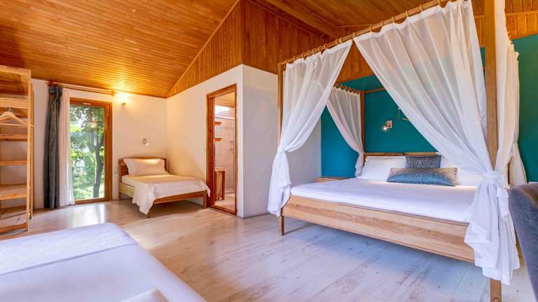 Die Etenna Beach Bungalows bieten komfortable klimatisierte Zimmer mit eigenem Bad. Jeder Bungalow verfügt über einen Balkon und Holzböden. Zur Ausstattung gehören auch ein Wasserkocher, eine Kaffeemaschine und eine Minibar.
