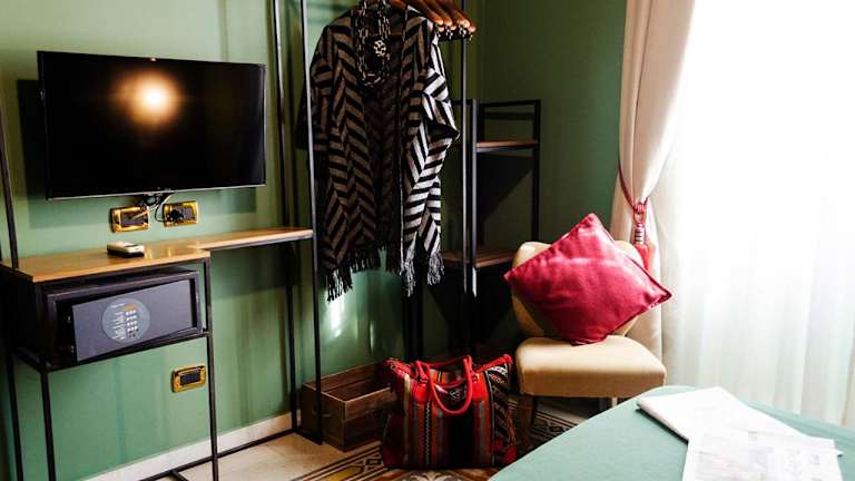 Die Zimmer im Hotel Eterna Roma sind modern und komfortabel eingerichtet und bieten alles, was Sie für einen angenehmen Aufenthalt benötigen. Jedes Zimmer verfügt über ein eigenes Bad mit Dusche, eine Klimaanlage, einen Flachbild-TV und einen Kühlschrank. Zusätzlich stehen Ihnen ein Toaster und eine Kaffeemaschine zur Verfügung, damit Sie sich jederzeit eine kleine Mahlzeit zubereiten können.