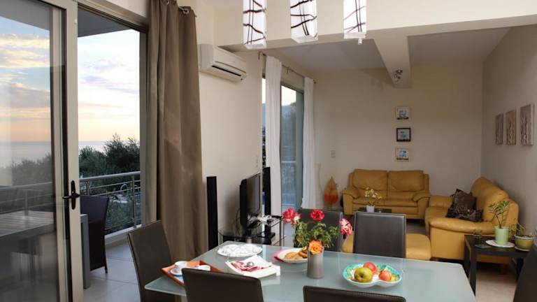 Jede Villa im Euphoria - South Crete Villas ist geschmackvoll eingerichtet und bietet eine komfortable und luxuriöse Unterkunft. Die klimatisierten Zimmer verfügen über eine Terrasse, auf der Sie den atemberaubenden Meerblick genießen können. In der voll ausgestatteten Küche können Sie köstliche Mahlzeiten zubereiten und im Essbereich gemeinsam speisen. Der gemütliche Sitzbereich lädt zum Entspannen ein und bietet einen Flachbild-Sat-TV für Ihre Unterhaltung. Ein Geschirrspüler und eine Kaffeemaschine stehen ebenfalls zur Verfügung, um Ihren Aufenthalt so angenehm wie möglich zu gestalten.