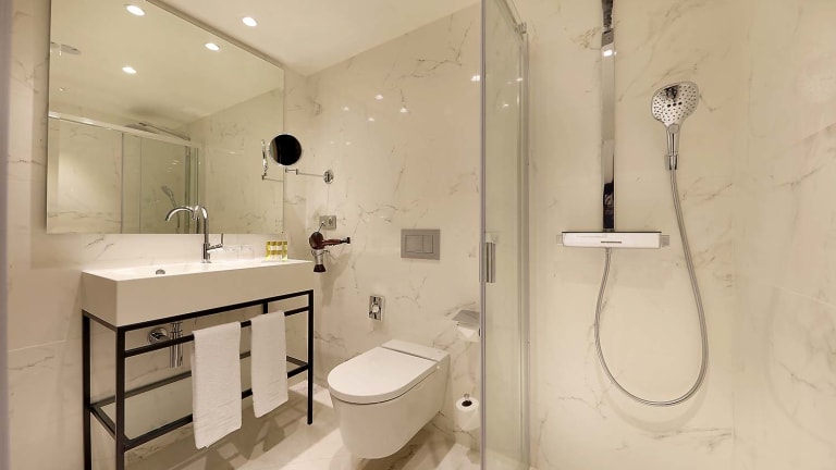 Auf jedem Zimmer gibt es ein Badezimmer. Ein Haartrockner und Toilettenartikel komplettieren die Einrichtung des Badezimmers. Ein angenehmer Sitzbereich gehört zur Ausstattung. Ihr Hotelzimmer besitzt eine Minibar, einen Safe sowie einen Schreibtisch. Es findet sich ein Bügeleisen im Zimmer. Ihr Hotelzimmer bietet ein Telefon, einen CD-Player sowie einen Fernseher.