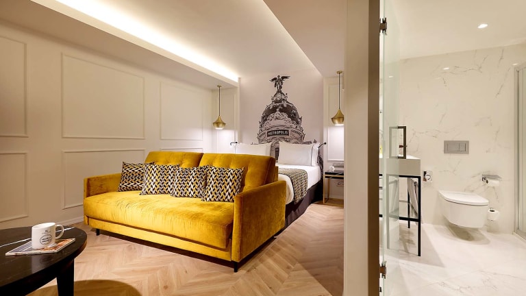 Das Hotel Eurostars Madrid Gran Vía bietet 133 klimatisierte Wohnräume. Zu den Vorzügen gehört gebührenfreies WLAN. Zur Unterkunft zählen eine Bar, ein Restaurant, ein Seminarraum sowie ein Gepäckraum. Zum Haus gehört selbstverständlich ein Aufzug. Wäscheservice, Weckdienst, Chemische Reinigung, Bügelservice sowie Schuhputzservice zählen zum erweiterten Dienstleistungspaket. Die Gäste können ihr Auto auf einem der zahlungspflichtigen Hotelparkplätze parken.