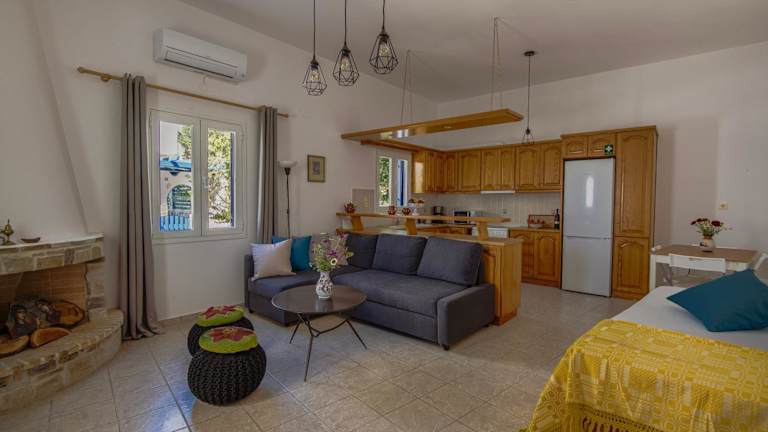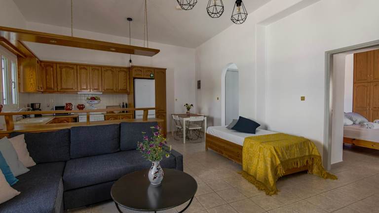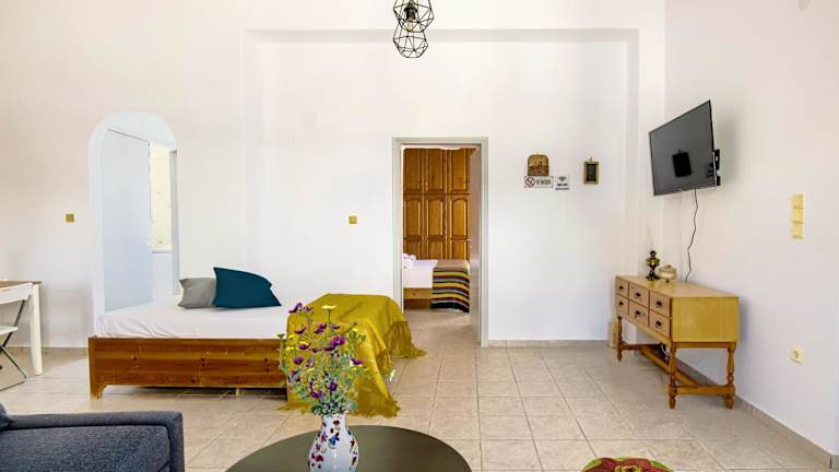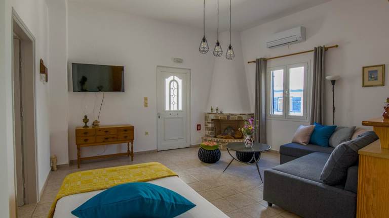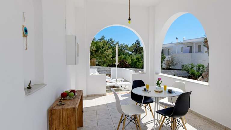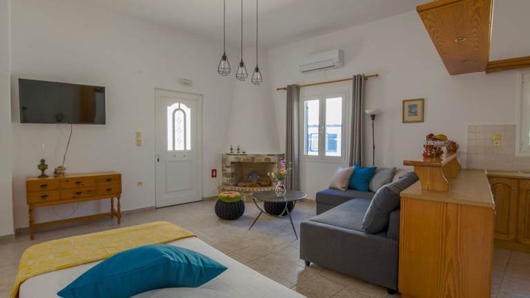 Die Unterkunft befindet sich in der Nähe des Strandes Paralia Drios, etwa 1,4 km vom Golden Beach entfernt. Die Umgebung bietet Zugang zu verschiedenen Stränden, darunter Paralia Lolantonis, der 1,9 km entfernt ist. Der venezianische Hafen und die Burg liegen 17 km von der Unterkunft entfernt. Der nächste Flughafen, der Flughafen Paros, ist 13 km entfernt.