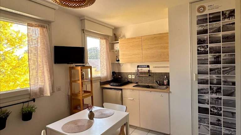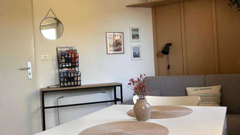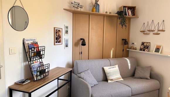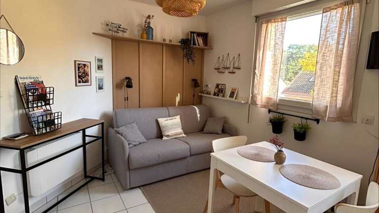 Die Unterkunft befindet sich in Saint-Brévin-les-Pins, nur 50 Meter von der Strandpromenade entfernt und in der Nähe mehrerer Strände, darunter Plage des Pins (700 m) und Plage des Rochelets (1,6 km). Weitere sehenswerte Orte wie Ecomusée (15 km) und Château de Pornic (16 km) sind ebenfalls in der Nähe. Der Bahnhof Saint-Nazaire liegt 14 km entfernt, während der nächste Flughafen, der Flughafen Saint-Nazaire Montoir, in einer Entfernung von 11 km zu finden ist.