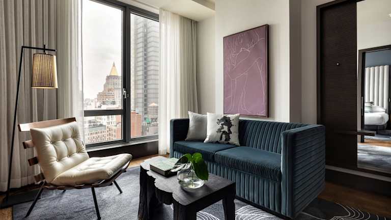 Das Kimpton Hotel Eventi liegt im historischen Chelsea-Viertel in New York. In der Nähe finden Sie bekannte Kunstgalerien, Veranstaltungsorte und Restaurants. Die Penn Station, der Madison Square Garden, die Metrostation Herald Square und das Empire State Building sind nur wenige Häuserblocks entfernt. Es gibt auch Bars in der Umgebung und Nachtclubs sind etwa 2 km entfernt. Der Busbahnhof an der Port Authority ist etwa 1,3 km entfernt und der Times Square ist etwa 1,5 km entfernt. Der Central Park und das MoMA sind ebenfalls in der Nähe. Der internationale Flughafen Newark Liberty ist etwa 17 km entfernt.