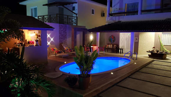 Das Excelente Duplex em Arembepe Aquaville - Bahia bietet eine ideale Unterkunft für Ihren Aufenthalt in Salvador. Mit einem Außenpool und einer Bar können Sie sich hier entspannen und die warme Atmosphäre genießen. Das Ferienhaus verfügt über einen eigenen Pool und einen schönen Garten, in dem Sie grillen können. Kostenloses WLAN und Parkplätze stehen zur Verfügung. Die Unterkunft ist gut ausgestattet und bietet einen Balkon mit Poolblick, 3 Schlafzimmer, ein Wohnzimmer, eine voll ausgestattete Küche und 3 Badezimmer. Handtücher und Bettwäsche werden gestellt. Die Lage des Ferienhauses ermöglicht es Ihnen, die Sehenswürdigkeiten von Salvador wie die Burg Garcia D'avila und das Institut Baleia Jubart zu erkunden.