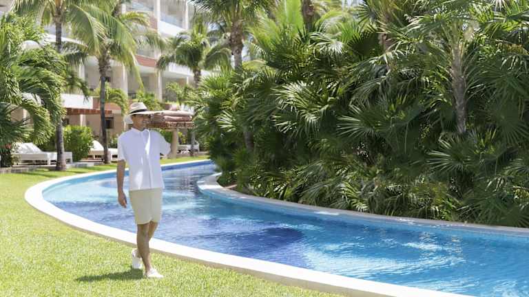 Das Excellence Playa Mujeres All Inclusive liegt in Cancun, in einer Gegend mit einem Inlandsyachthafen und einem Golfplatz. Das Resort befindet sich auf einer unberührten Halbinsel mit einer atemberaubenden Aussicht auf die Karibik. Die Umgebung ist von üppiger karibischer Schönheit geprägt und bietet den Gästen eine erholsame und entspannte Atmosphäre. Obwohl das Resort abgeschieden und ruhig ist, ist es nur etwa 25 km vom Internationalen Flughafen Cancun entfernt und in der Nähe von Einkaufsmöglichkeiten und der Bushaltestelle.