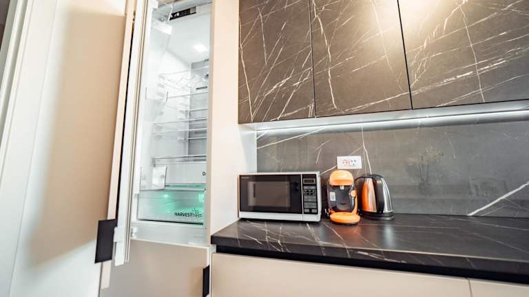 Es besteht die Möglichkeit zur Essenslieferung in die Unterkunft. In den Apartments gibt es eine voll ausgestattete Küche, die eine Mikrowelle, einen Kühlschrank, einen Ofen und eine Kaffeemaschine umfasst.