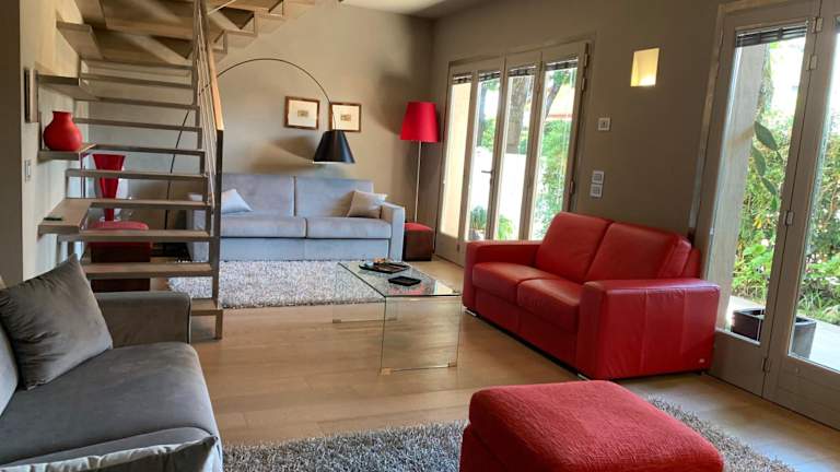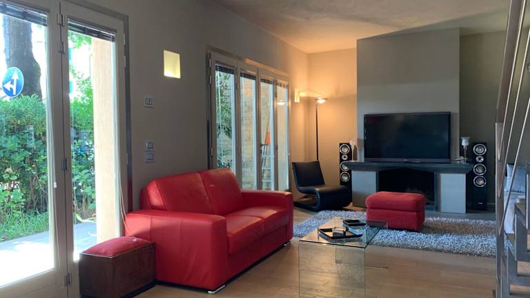 Exclusive Loft 300mt by the sea Forte dei Marmi bietet klimatisierte Übernachtungsmöglichkeiten in einer modernen Villa mit einem Balkon und kostenlosem WLAN. Zu den Annehmlichkeiten gehören ein Garten, eine Terrasse und die Möglichkeit zur Anmietung von Fahrrädern sowie Autos.