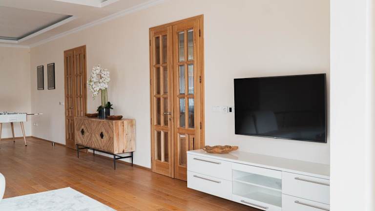 Die Ferienwohnung enthält zwei Schlafzimmer, ein Wohnzimmer mit Sitz- und Essbereich, sowie ein Badezimmer mit Bidet und Dusche. Die Ausstattung umfasst außerdem eine Spielekonsole, und Handtücher sowie Bettwäsche werden bereitgestellt.