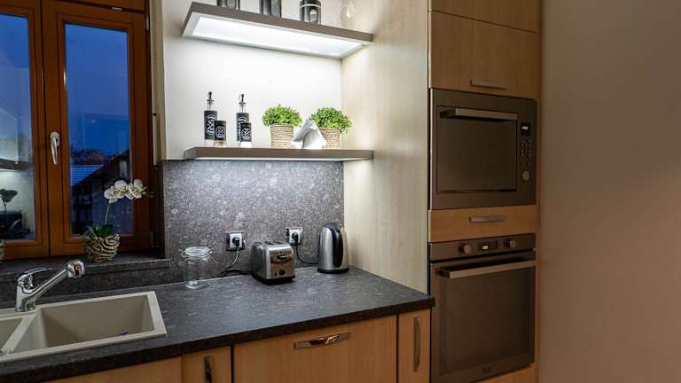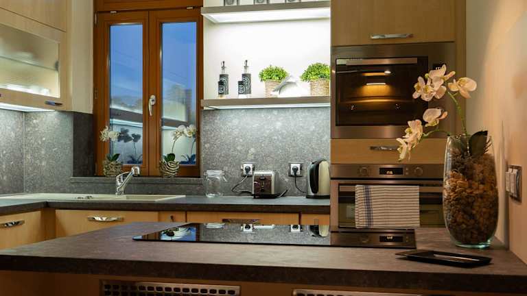 Die Ferienwohnung verfügt über eine voll ausgestattete Küche mit Kühlschrank, Geschirrspüler und Ofen, wodurch Selbstverpflegung möglich ist. Eine Bar ist ebenfalls in der Unterkunft vorhanden.