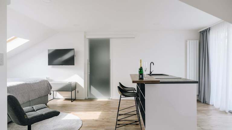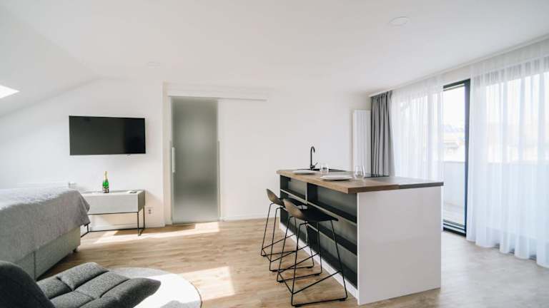 Die klimatisierten Apartments verfügen über eine moderne Ausstattung und bieten kostenfreies WLAN. Jede Wohneinheit verfügt über eine voll ausgestattete Küche mit einem Esstisch, einen Flachbild-Sat-TV und ein eigenes Badezimmer mit einer Dusche und kostenfreien Pflegeprodukten. Zu den weiteren Annehmlichkeiten gehören ein Kühlschrank, ein Geschirrspüler, eine Minibar, eine Kaffeemaschine und ein Wasserkocher.