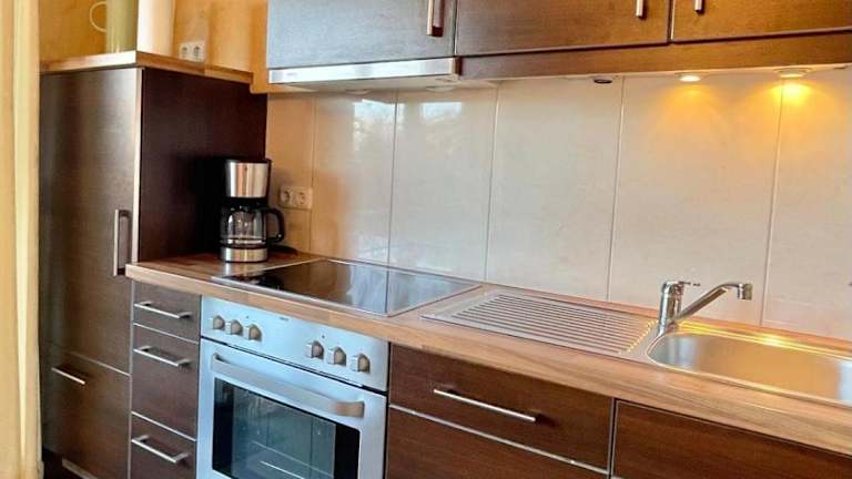 Die voll ausgestattete Küche der Unterkunft umfasst einen Kühlschrank, Geschirrspüler, Ofen, Herdplatte, Toaster, Kaffeemaschine und Wasserkocher, sodass die Gäste ihre Mahlzeiten selbst zubereiten können. Außerdem steht ein Grill zur Verfügung.