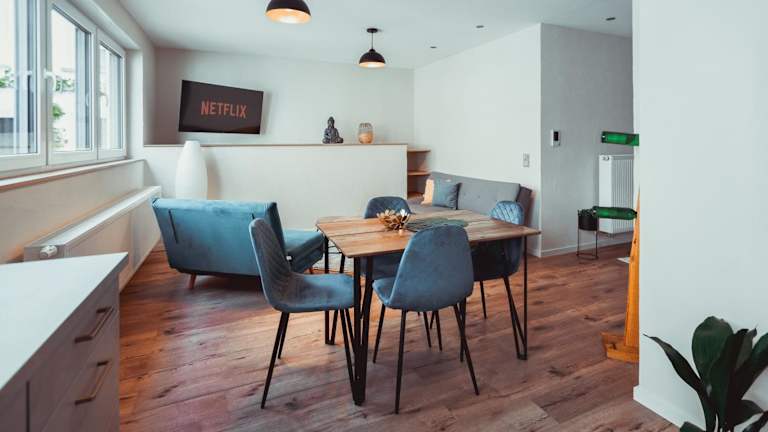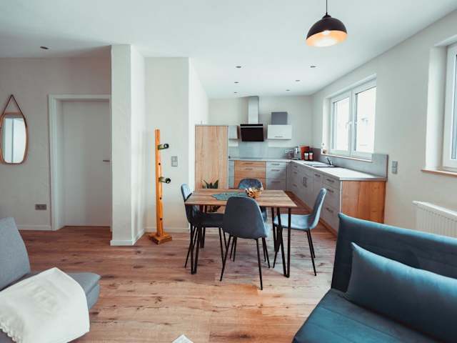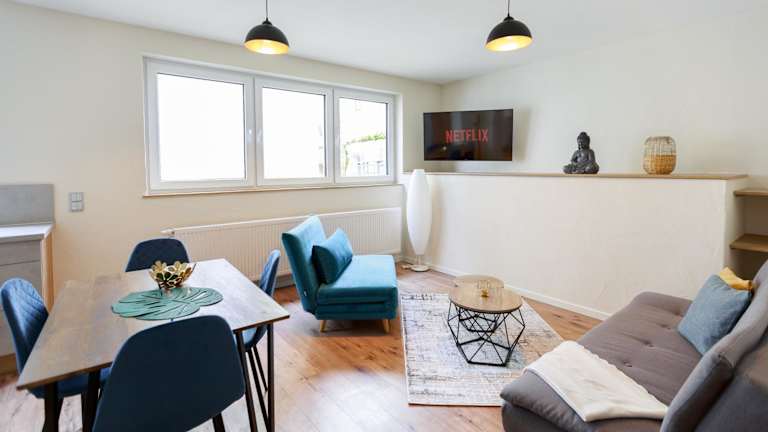 Die Ferienwohnung verfügt über ein Schlafzimmer, eine komplett ausgestattete Küche mit Kühlschrank und Geschirrspüler, einen Flachbild-TV sowie einen Sitzbereich. Das Badezimmer ist mit einer Dusche ausgestattet. Handtücher und Bettwäsche werden zur Verfügung gestellt.