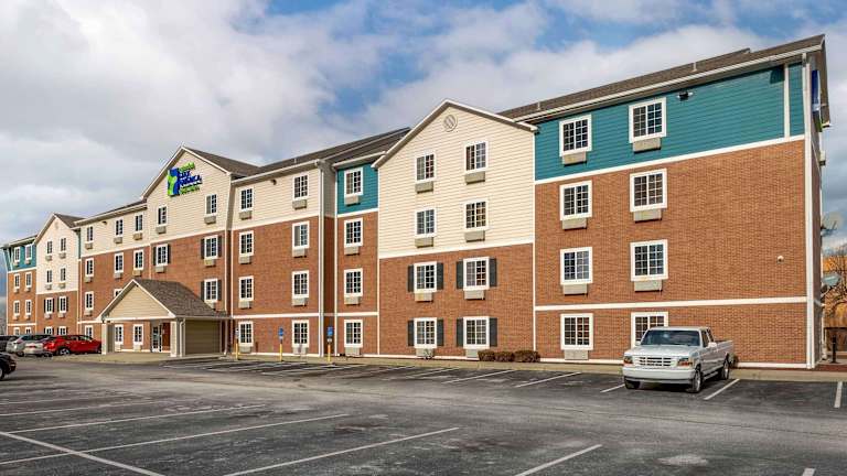 Das Extended Stay America Select Suites - Cincinnati - Florence - Airport ist eine Unterkunft mit klimatisierten Zimmern und einem eigenen Badezimmer. Es bietet kostenloses WLAN und ist mit einem Familienzimmer ausgestattet. Das Hotel hat eine einfache und funktionale Ausstattung, die sich gut für längere Aufenthalte eignet.
