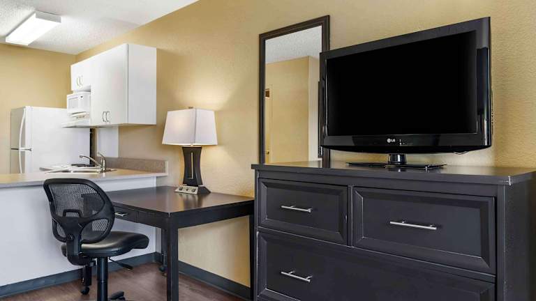 Die Zimmer im Extended Stay America - Tampa - North - USF - Attractions sind mit voll ausgestatteten Küchen ausgestattet, die es den Gästen ermöglichen, ihre eigenen Mahlzeiten zuzubereiten. Die Küchen verfügen über ein Kochfeld, eine Mikrowelle und einen Kühlschrank. Die Zimmer sind komfortabel eingerichtet und bieten hochwertige Bettwäsche mit zusätzlichen Kissen für einen erholsamen Schlaf. Ein wöchentlicher Reinigungsservice wird kostenfrei angeboten, und gegen Aufpreis können Sie auch einen täglichen Reinigungsservice in Anspruch nehmen. Handtücher und Bettwäsche werden an der Rezeption zur Verfügung gestellt.
