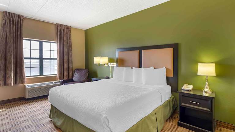 Das Extended Stay America - Chicago - Elmhurst - O'Hare ist auf längere Aufenthalte ausgerichtet und bietet eine 24-Stunden-Rezeption sowie kostenfreies WLAN. Jedes Zimmer ist mit einer voll ausgestatteten Küche ausgestattet, die ein Kochfeld, eine Mikrowelle und einen Kühlschrank umfasst. Das Hotel stellt hochwertige Bettwäsche und zusätzliche Kissen zur Verfügung und ist sowohl für Familien als auch für einzelne Reisende eingerichtet.