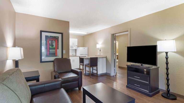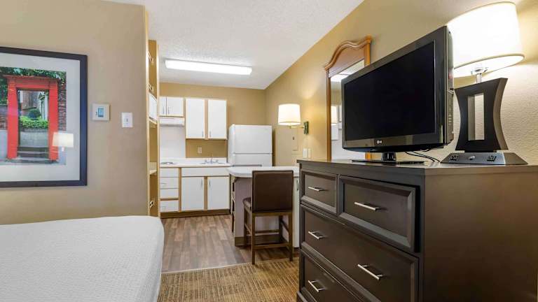 Das Extended Stay America - Fort Worth - Medical Center ist die perfekte Wahl für längere Aufenthalte in Fort Worth. Mit voll ausgestatteten Küchen in jedem Zimmer können Sie sich wie zu Hause fühlen. Das Hotel bietet kostenfreies WLAN, Wäschemöglichkeiten und hochwertige Bettwäsche für maximalen Komfort. Die Lage des Hotels ermöglicht es Ihnen, nahegelegene Sehenswürdigkeiten wie das Universitätsdorf und das Ridgmar-Einkaufszentrum zu erkunden. Genießen Sie den kostenlosen Parkplatz und das kostenlose Frühstück zum Mitnehmen.