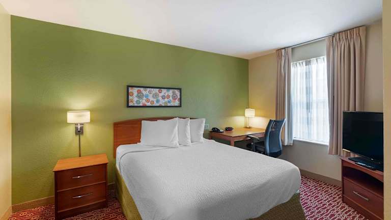 Die Gästezimmer sind mit Klimaanlage, einem Flachbild-TV mit Kabelkanälen, einer Kochnische und einem eigenen Badezimmer mit einer Badewanne sowie einem Haartrockner ausgestattet. Jedes Zimmer enthält ein Queensize-Bett oder ein Sofabett, einen Schreibtisch, einen Safe, eine Minibar und ein Bügelset. Die Kochnische ist komplett mit Kühlschrank, Herd, Mikrowelle, Tee-/Kaffeemaschine, Geschirrspüler und Backofen ausgestattet. Rollstuhlgerechte Zimmer sind ebenfalls verfügbar.