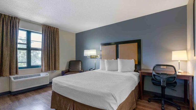 Das Extended Stay America - Sacramento - Elk Grove in Elk Grove ist die ideale Unterkunft für längere Aufenthalte. Mit voll ausgestatteten Küchen in jedem Zimmer bietet das Hotel seinen Gästen die Möglichkeit, sich wie zu Hause zu fühlen. Kostenfreies WLAN, eine 24-Stunden-Rezeption und kostenlose Parkplätze sind nur einige der Annehmlichkeiten, die das Hotel zu bieten hat. Genießen Sie ein kostenloses Frühstück zum Mitnehmen und profitieren Sie von einem wöchentlichen Reinigungsservice. Die Lage des Hotels ermöglicht es Ihnen, nahegelegene Attraktionen wie die Bowlingbahn Strike, das Elk Grove Aquatic Center und das Century Movie Theatre zu erkunden.