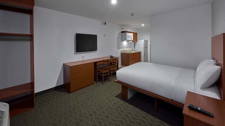 Die Zimmer sind mit Klimaanlage und Heizung ausgestattet und verfügen über ein Queensizebett sowie ein Sofabett. Sie sind mit einer Kochnische ausgestattet, die einen Kühlschrank, einen Herd und eine Mikrowelle umfasst. Ein Schreibtisch, ein Telefon, ein TV-Gerät mit Kabelanschluss und ein DVD-Player sind ebenfalls vorhanden. Die Badezimmer sind mit einer Dusche und einer Badewanne ausgestattet und bieten Kosmetikartikel sowie Handtücher. Rollstuhlgerechte Zimmer sind ebenfalls verfügbar.