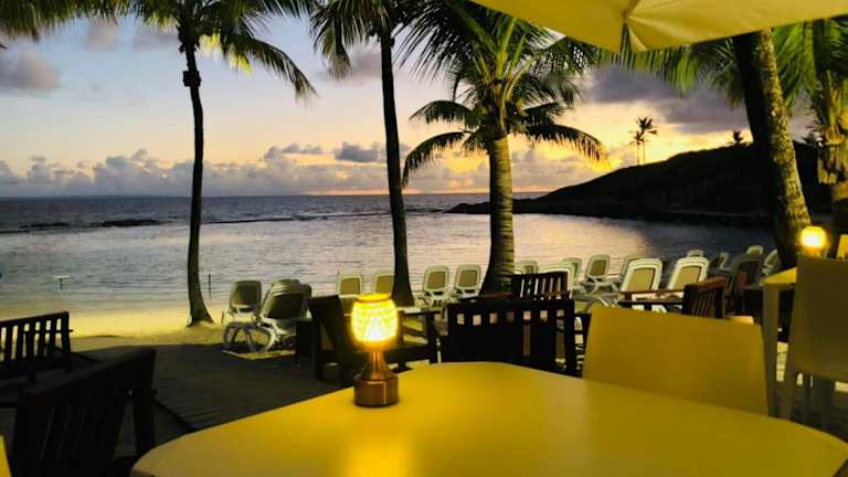 F3 _ Kaz ananas passion au Manganao bietet Übernachtungsmöglichkeiten direkt am Strand mit einem Außenpool, einem eigenen Strandbereich, einem Garten sowie einem Restaurant. Die Unterkunft umfasst auch Tischtennis, kostenlosen Privatparkplatz und kostenfreies WLAN.