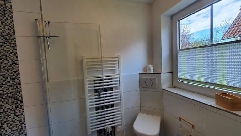 Die Ferienwohnung F4a EG - Fasanenblick verfügt über zwei Schlafzimmer. Zur weiteren Ausstattung gehören eine voll ausgestattete Küche mit Kühlschrank und Geschirrspüler sowie ein Badezimmer mit Dusche.