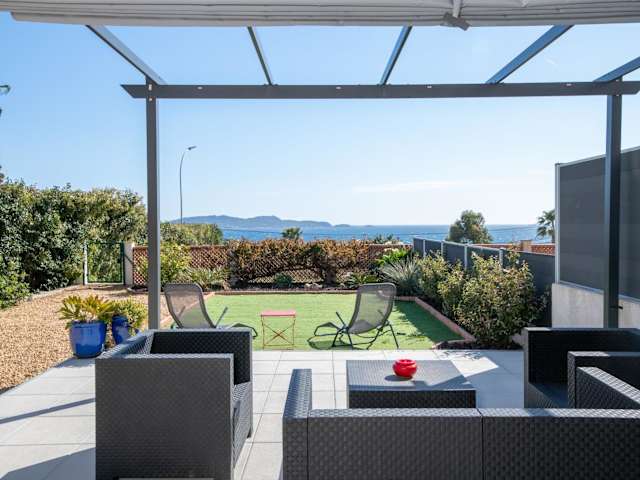 Entdecken Sie das Vue mer superbe pavillon - LESCLESDENICOLE LE PRADET in Carqueiranne und genießen Sie den traumhaften Meerblick von der Terrasse aus. Dieses klimatisierte Apartment bietet Ihnen einen komfortablen Aufenthalt mit 2 Schlafzimmern, einer voll ausgestatteten Küche und kostenfreiem WLAN. Entspannen Sie im Garten oder nutzen Sie die Grillmöglichkeiten. Der Strand und der Bahnhof Toulon sind nur eine kurze Fahrt entfernt.