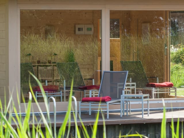 Gemeinsame Zeit zu Zweit oder mit der ganzen Familie: Unsere Fährhauslodges Natur in Sicht zwischen Norden und Greetsiel bieten Ihnen alles, um sich Ihren persönlichen Urlaubswunsch zu erfüllen. Die am See gelegene Saunaanlage mit Ruheraum und freiem Blick in die Natur lädt zu erholsamen Momenten fernab von Hektik und Alltag ein. Alle Appartements sind zudem mit TV und einem Audiosystem ausgestattet.