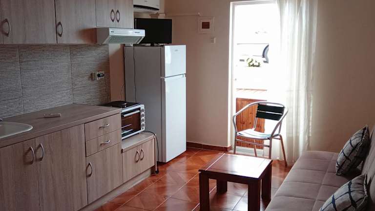 Die Wohneinheiten im FAFALIOS Studios sind klimatisiert und verfügen über ein eigenes Badezimmer. Jedes Zimmer ist mit einem Flachbild-TV und einer voll ausgestatteten Küche ausgestattet.