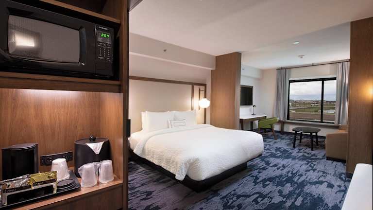 Die Zimmer im Fairfield by Marriott Edmonton International Airport verfügen über ein komfortables Kingsize-Bett, ein Telefon und WLAN. Die Badezimmer sind mit einer Dusche ausgestattet. Es gibt auch rollstuhlgerechte Zimmer mit barrierefreien Badezimmern. Alle Zimmer sind Nichtraucherzimmer.