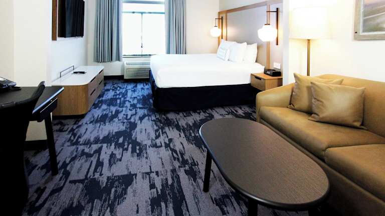 Die modernen Zimmer im Fairfield Inn and Suites Charleston bieten den Gästen Komfort und Annehmlichkeiten während ihres Aufenthalts. Jedes Zimmer verfügt über kostenfreies WLAN und Kabel-TV sowie einen Kühlschrank und eine Mikrowelle. Die Zimmer sind klimatisiert und bieten einen Schreibtisch und einen Sitzbereich.
