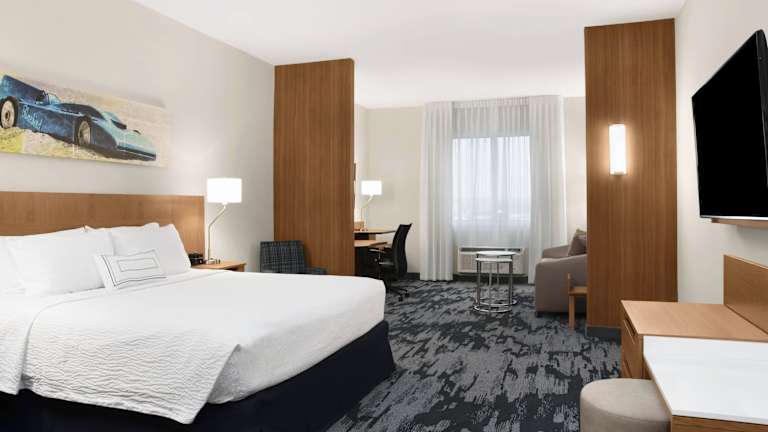 Die Zimmer im Fairfield Inn & Suites by Marriott Daytona Beach Speedway/Airport sind komfortabel und gut ausgestattet. Jedes Zimmer verfügt über ein eigenes Badezimmer mit einer Badewanne oder einer Dusche, kostenfreien Pflegeprodukten und einem Haartrockner. Zur Ausstattung gehören auch Klimaanlage, Safe und TV.