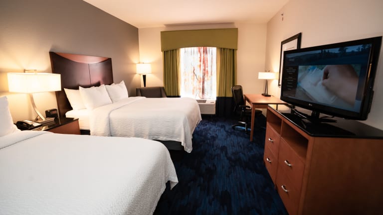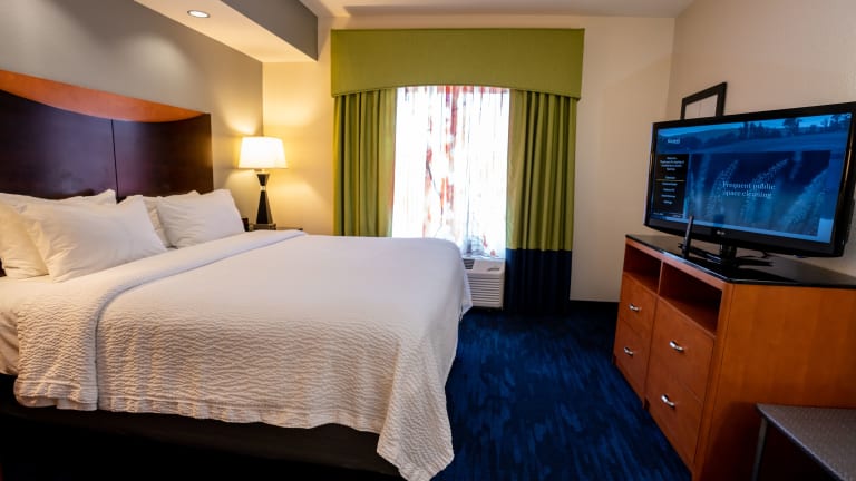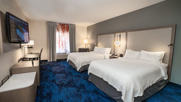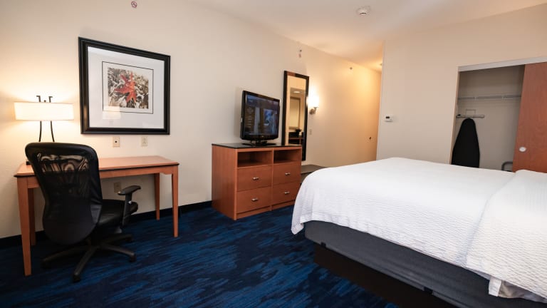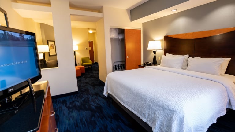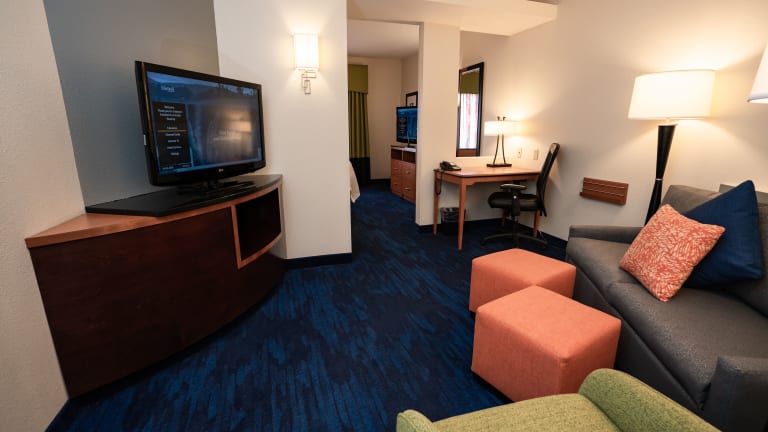 Die Zimmer im Fairfield Inn & Suites by Marriott sind komfortabel und modern eingerichtet. Jedes Zimmer verfügt über Annehmlichkeiten wie kostenloses WLAN, einen 42-Zoll-Flachbild-TV, einen DVD-Player, eine Mikrowelle, einen Kühlschrank und eine Kaffeemaschine. Ein Sitzbereich und ein Schreibtisch sind ebenfalls vorhanden.