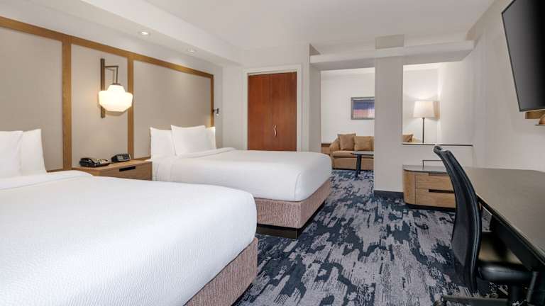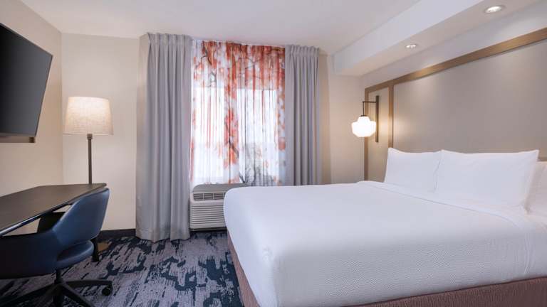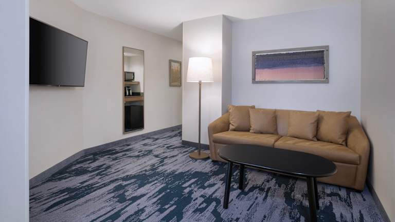 Die Zimmer im Fairfield Inn & Suites Denton sind klimatisiert und verfügen über einen Sitzbereich sowie moderne Annehmlichkeiten wie Flachbild-TV, kostenfreies WLAN, ein eigenes Badezimmer und eine Auswahl an Bettwäsche. Die Räume sind mit Teppichboden ausgestattet und bieten verschiedene Bettvarianten, darunter Doppel- und Kingsize-Betten. Jedes Zimmer ist mit einem Kühlschrank, einer Mikrowelle und zusätzlichen Komforts wie einem Safe, einer Minibar und einer Tee-/Kaffeezubereiter ausgestattet. Die Badezimmer sind mit Duschen und Haartrocknern ausgestattet. Es sind sowohl Nichtraucher- als auch Raucherzimmer verfügbar, ebenso wie barrierefreie Zimmer mit speziellen Einrichtungen.