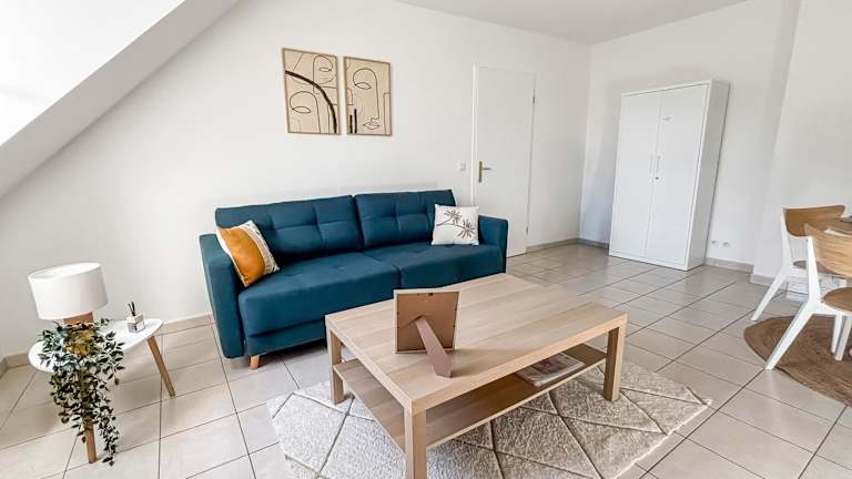 Die Ferienwohnung besteht aus einem Schlafzimmer, einem Wohnzimmer und einem Badezimmer mit Badewanne. Zur Ausstattung der Küche gehören ein Kühlschrank und eine Kaffeemaschine, zudem werden Handtücher und Bettwäsche bereitgestellt. Die Unterkunft umfasst Nichtraucherzimmer sowie Familienzimmer.