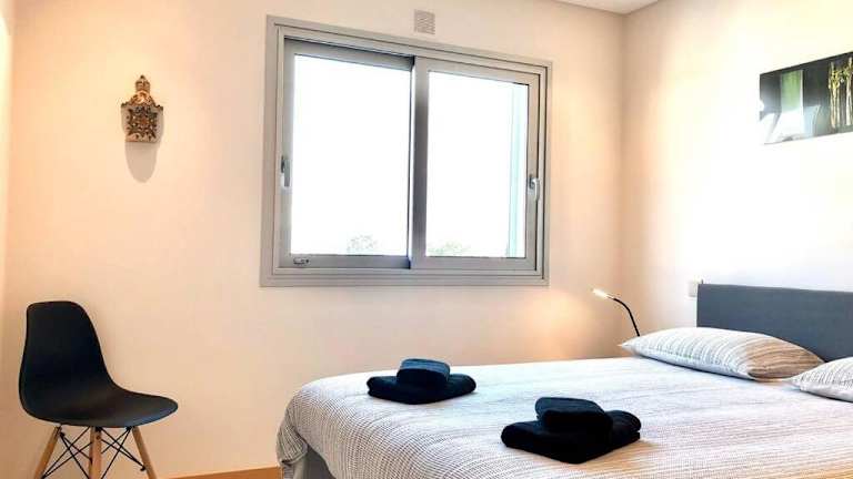 Die Ferienwohnung verfügt über ein separates Schlafzimmer, ein Wohnzimmer sowie eine voll ausgestattete Küche mit Kühlschrank und Geschirrspüler. Zudem gibt es ein Badezimmer. Handtücher und Bettwäsche sind in der Ferienwohnung vorhanden.