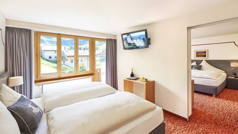 Zimmer 16 Nichtraucher-Zimmer warten darauf, dass Sie das Hotel Turna zu Ihrem Ferien-Daheim machen. Allein, zu zweit oder mit der Familie. Die im modernen Alpen-Stil eingerichteten Zimmer verfügen über TV und Dusche/WC, Haartrockner. Familien - Zimmer sind besonders beliebt. Einige der Zimmer haben einen Balkon. Schlafen Sie gut in der frischen Bergluft.