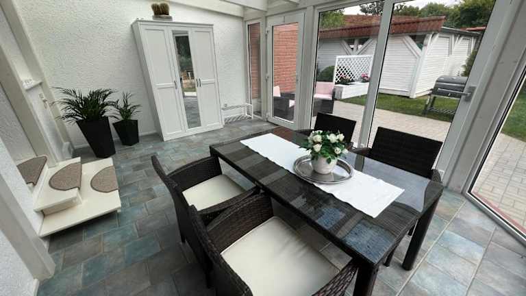 Die Familienfreundliche Ferienwohnung mit Wintergarten verfügt über 2 gemütliche Schlafzimmer, ein geräumiges Wohnzimmer und eine voll ausgestattete Küche. Das Apartment ist geschmackvoll eingerichtet und bietet allen Komfort, den Sie für einen angenehmen Aufenthalt benötigen. Der Wintergarten lädt zum Entspannen ein und bietet einen schönen Blick auf den Garten. Handtücher und Bettwäsche werden gestellt, sodass Sie sich um nichts kümmern müssen.