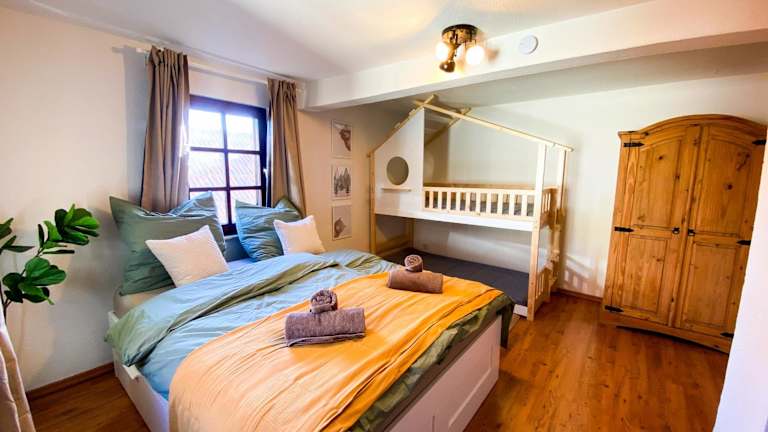 Familienglück im Waldglück Pfalz bietet eine Ferienwohnung mit kostenlosem WLAN und einem Garten. Die Unterkunft eignet sich gut für Familien.