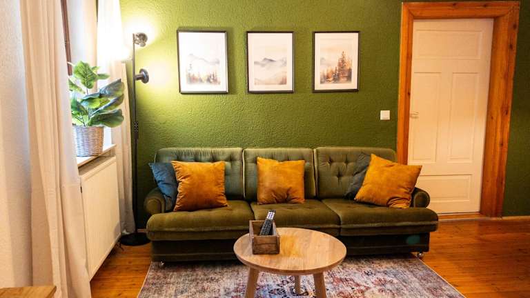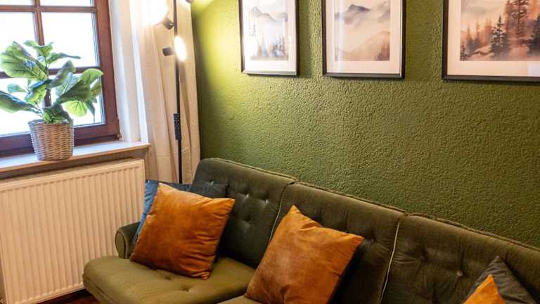 Die Ferienwohnung verfügt über 1 Schlafzimmer, ein Wohnzimmer und eine voll ausgestattete Küche mit Kühlschrank und Kaffeemaschine. Das Badezimmer ist mit einer Dusche und kostenlosen Pflegeprodukten ausgestattet. Handtücher und Bettwäsche sind ebenfalls vorhanden.