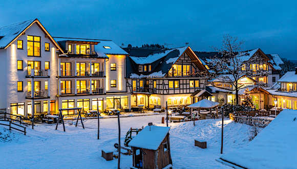 120 km östlich von Köln, mitten in der Wintersportarena Sauerland, nur 20 km von Winterberg, liegt das idyllische Dörfchen Ebbinghof. Die knapp 30 Einwohner sind sehr innovativ - der Ort ist erstes "Energiedorf NRW" ! Die Energie wird CO²-neutral produziert, und das Dorf ist schon jetzt energieautark. Das Familienhotel Ebbinghof liegt am Rande des Dorfes (na gut - ein wirkliches "Zentrum" gibt es in dem kleinen Ort auch nicht...) und nur 2 km von Bad Fredeburg (Apotheken, Kinderarzt, Krankenhaus, Drogerien...) und Schmallenberg (Shopping, Falke-Outlet, historischer Ortskern). Direkt ab Hof gibt es gut beschilderte Wander-, Rad-, Kinderwagen- und Reitwege in herrlicher Landschaft! NEU: E-Tankstelle!