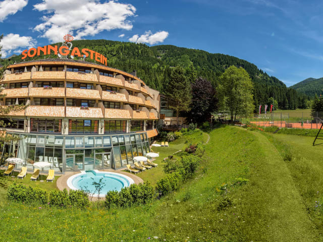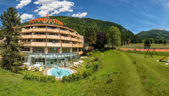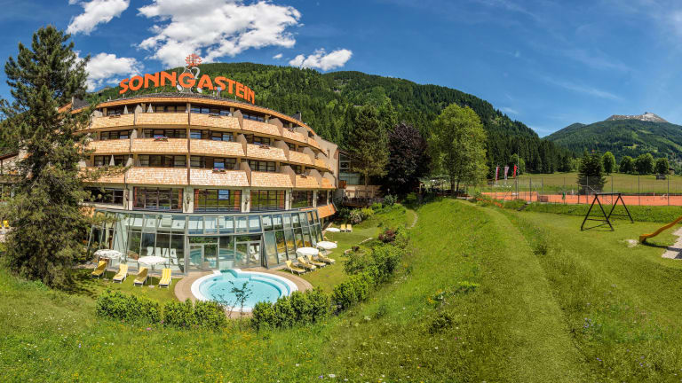 Im Familienhotel Sonngastein in Bad Gastein erleben Sie Urlaub für drei Generationen in herzlicher Atmosphäre. Komfortable Zimmer und großzügige Familiennester und Studios laden zum Wohlfühlen ein, während die ausgezeichnete Kulinarik und die persönliche Betreuung durch die Gastgeberfamilie für besondere Genussmomente sorgen. Erwachsene genießen entspannte Stunden im stilvollen Wellness- und Fitnessbereich oder auf den sonnigen Terrassen mit Bergpanorama. Für Kinder und Teens bietet die 1.700 m² große Erlebnishalle Abenteuer pur. Eingebettet in die beeindruckende Natur des Nationalparks Hohe Tauern finden Familien hier die perfekte Balance aus Aktivität, Erholung und gemeinsamem Glück.