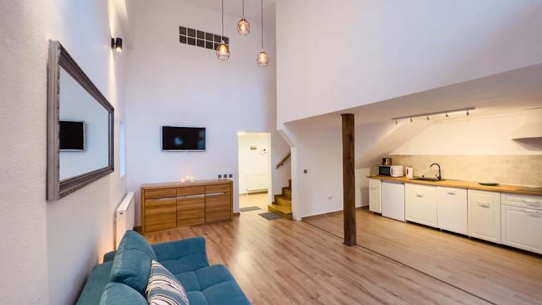 Das Family Apartment in Sighişoara liegt in der Nähe von beliebten Sehenswürdigkeiten wie der Festungskirche Biertan und der Weberbastei. Diese historischen Stätten bieten Ihnen die Möglichkeit, in die reiche Geschichte der Region einzutauchen. Die Festungskirche Saschiz und die Festungskirche Viscri sind ebenfalls einen Besuch wert und leicht vom Apartment aus zu erreichen. Der nächstgelegene Flughafen ist der Flughafen Târgu Mureş, der etwa 60 km entfernt liegt.