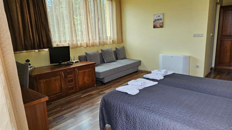 Das Family Hotel Komhotel befindet sich in Berkowiza, 22 km vom Kom Peak entfernt. Der nächstgelegene Flughafen ist der Flughafen Sofia, der 93 km entfernt ist. Die Umgebung bietet Möglichkeiten zum Skifahren und Radfahren.