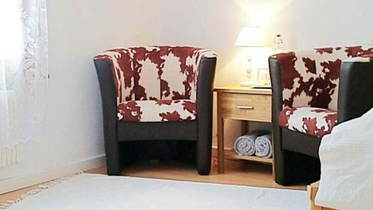 Die Ferienwohnung umfasst 3 Schlafzimmer und 1 Badezimmer. Zur Ausstattung gehören Bettwäsche, Handtücher, ein Flachbild-TV, ein Essbereich sowie eine voll ausgestattete Küche. Zudem steht eine Terrasse mit Blick auf die Berge zur Verfügung.
