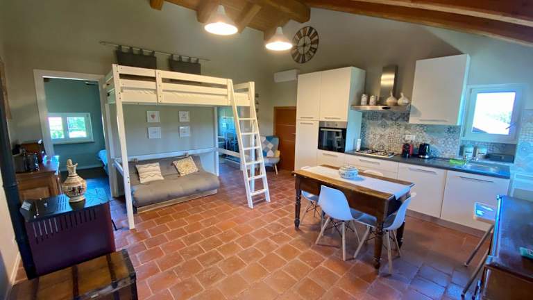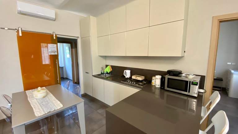 Die Ferienwohnung umfasst 3 Schlafzimmer, ein Wohnzimmer sowie eine voll ausgestattete Küche mit Kühlschrank und Kaffeemaschine. Zudem stehen 4 Badezimmer mit Bidet und Dusche zur Verfügung. Handtücher und Bettwäsche werden gestellt.
